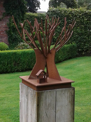 Het werk hiernaast heet "De Kroezeboom" geinspireerd op een van de oudste bomen van Nederland die in onze gemeente staat. Gebruikt materiaal : corten staal.